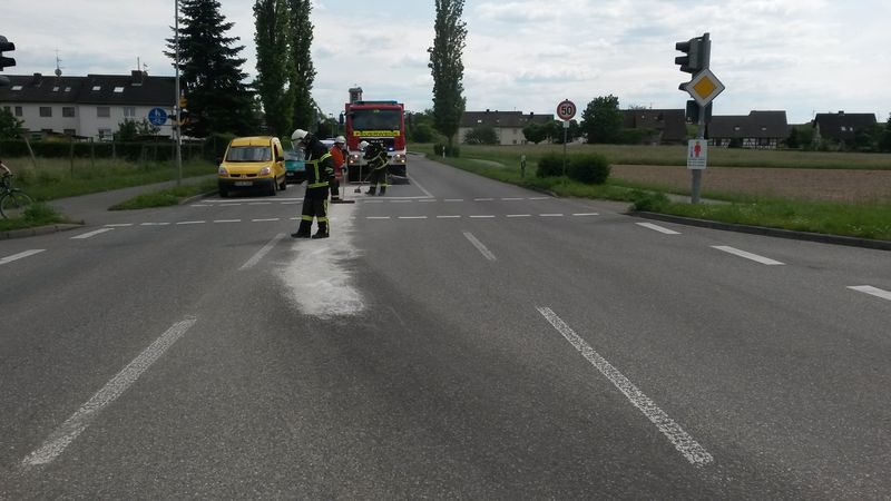 Der zweite Einsatz an diesem Tag wurde ohne Einsatzalarm abgewickelt: Ein Passant wurde am Feuerwehrgerätehaus vorstellig, in dem eine Mannschaft präsent war und meldete einen größeren Ölfleck auf der L116 kurz vor der Ampelkreuzung zwischen Hugstetten und Buchheim. Auf der Abbiegespur in Richtung Gottenheim war eine 50 Meter lange Spur sichtbar. Die Ursache der Spur ist und bleibt wohl unbekannt.
