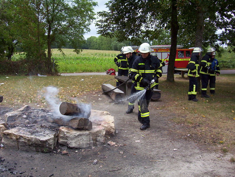 An der Grillstelle des Neuershauser Bolzplatzes wurden mutwillig Bänke und weiteres Gerümpel angezündet, was mit einer ziemlichen Rauchentwicklung einherging. Ein Passant entdeckte diese und rief den Feuer-Notruf; die Feuerwehr March wurde daher mit einem "Arbeitsalarm" zum Einsatz gerufen.