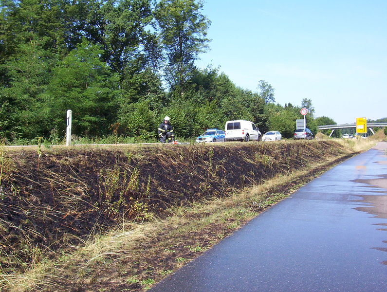 Erneut Flächenbrand an der Böschung der B 31a an fast derselben Stelle wie am Vortag