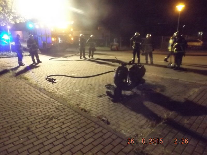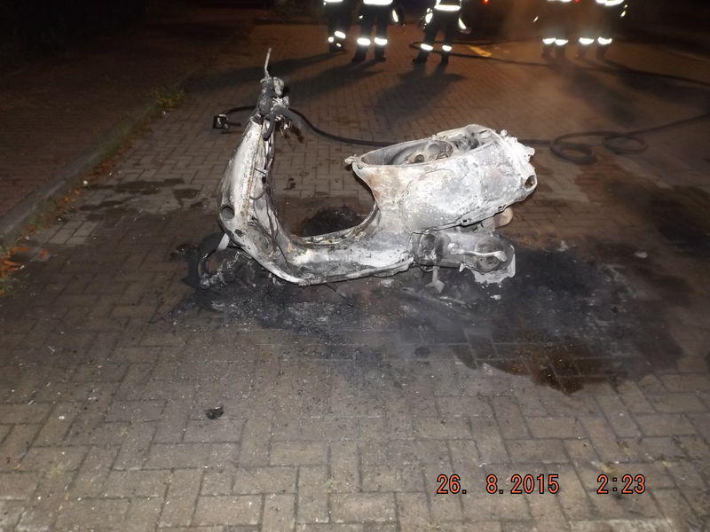 Der Brand wurde mit dem Schnellangriffsrohr schnell abgelöscht. Verletzt wurde niemand, am Roller entstand Totalschaden. Die Polizei nahm ein Einsatzprotokoll auf.