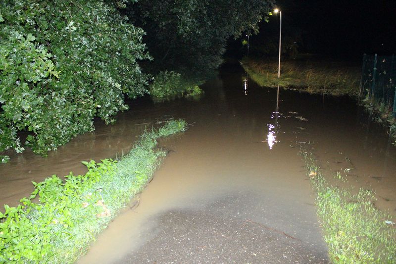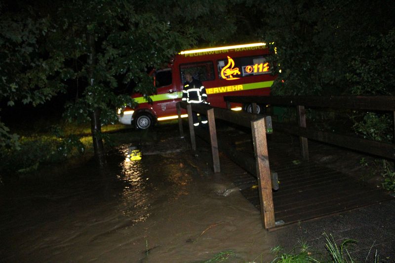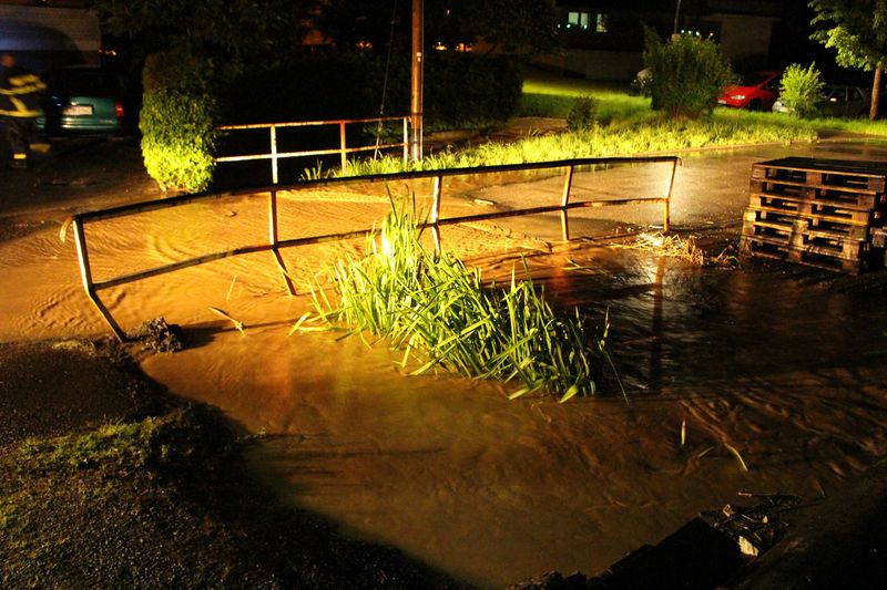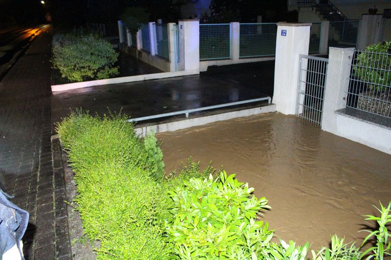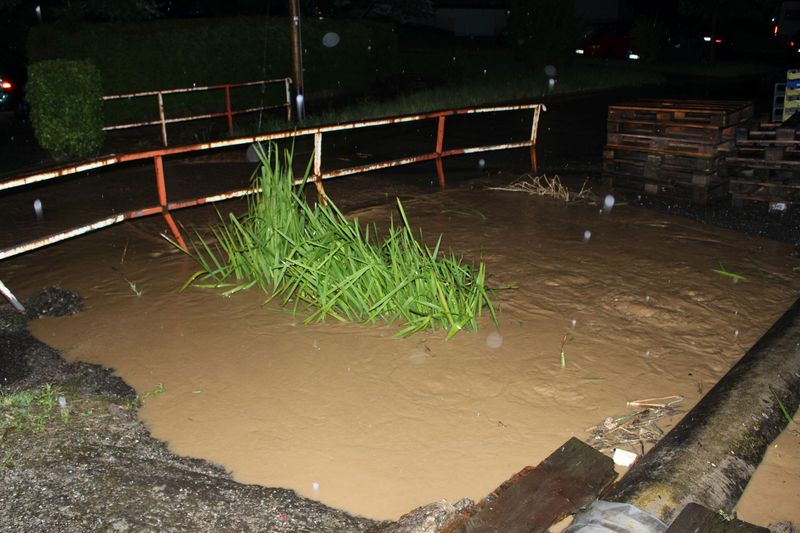 In dieser Nacht, von Freitag auf Samstag, brach im Breisgau ein heftiges Unwetter herein. Die Zugbahn des Starkregens lag im Bereich Wildtal, Gundelfingen, Hochdorf, March, weiter Richtung Teningen, und Kenzingen. Um 00:41 Uhr begann es in March heftig zu regnen und stellenweise zu hageln, begleitet von sehr starken Windböen, in der Spitze bis 89 km/h. Exakt 30 Minuten später, um 01.11 Uhr, zeigte der „Feuerwehr-Regenmesser“ bereits eine Regenmenge von 31,5 l/m2 an! Der letzte Niederschlag fiel um 05.42 Uhr. Die Niederschlags Tagessumme lag bis dahin bei 41,1 l/m2.