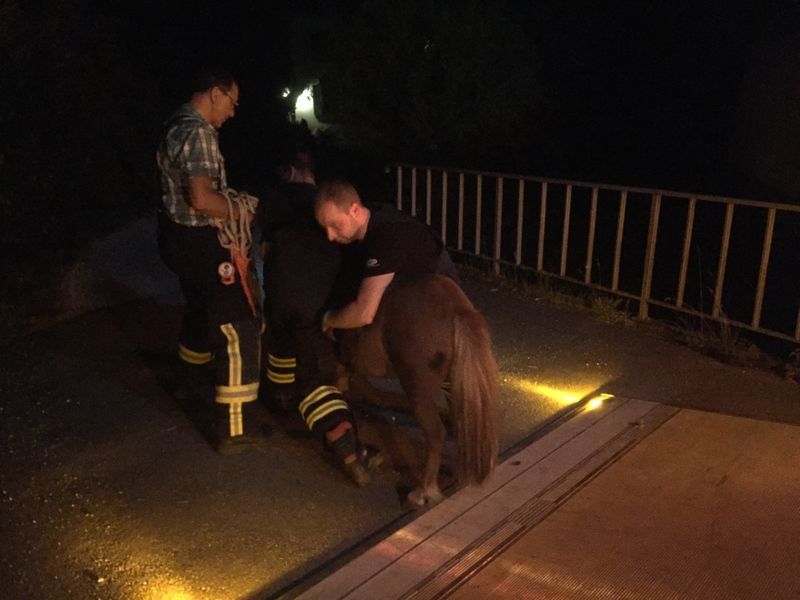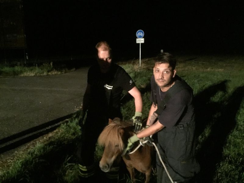 Die eingetroffene Feuerwehr konnte das, eben nur teilweise eingezäunte, Flurstück anhand fundierter Ortskenntnis schließlich dem Besitzer zuordnen und aufklären, dass dies gar keine Pferdekoppel sei, sondern eine ganz normale Wiese. Die Ponys müssen offenbar zufällig auf die Wiese gekommen sein. Eine latente Gefahr bestand auch durch die in unmittelbarer Nähe verlaufende L 116. Somit war auch klar, dass die Tiere eingefangen und abtransportiert werden müssen. Nur wie?