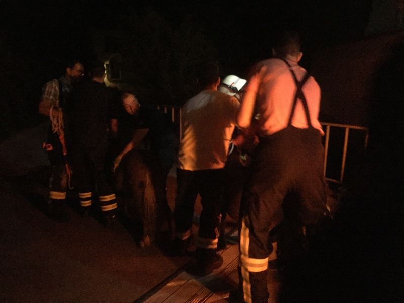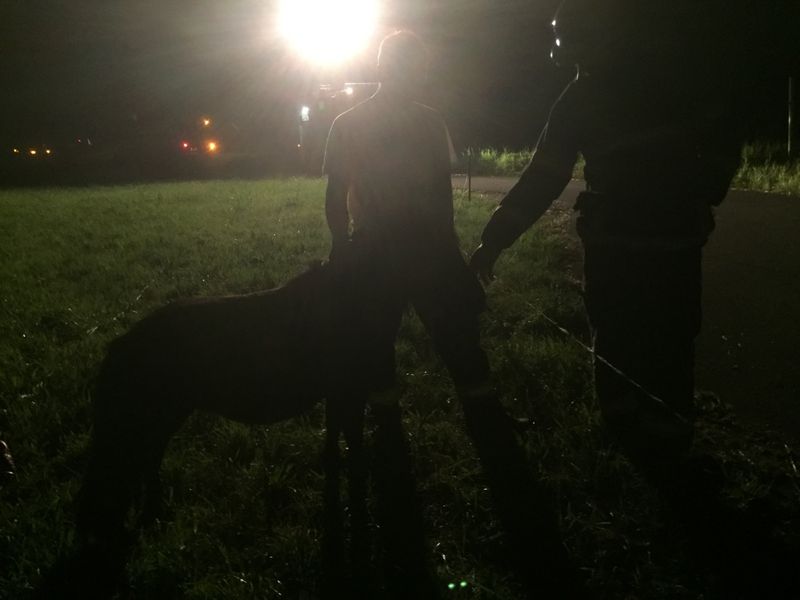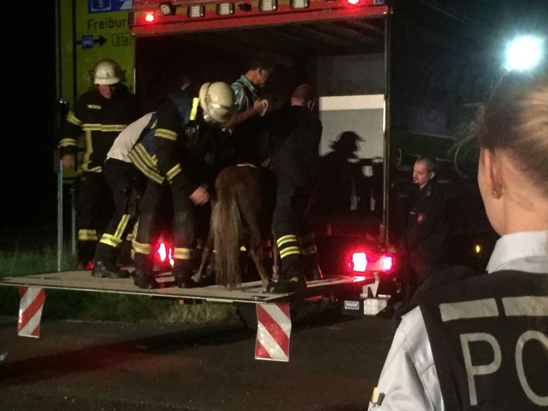 Auf einer Grünweide im Gewann Leiermatte auf Gemarkung Hugstetten, hatte ein Landwirt einen "falschen" Elektro-Weidezaun aufgestellt. Dieser Zaun verläuft direkt entlang des dort verlaufenden Wirtschaftswegs zur Dreisam und hat eigentlich keine Funktion. Offenbar soll er Hunde und/oder Personen davon abhalten, die Weide zu betreten. Dies hielt allerdings zwei herrenlose Zwergponys nicht davon ab dort in aller Ruhe zu weiden. Sie müssen wohl vom Hinterland kommend auf die Wiese gelangt sein. Ein Passant entdeckte, von der benachbarten Landesstraße L 116, die Situation und rief am späten Abend die Polizei. Als diese dort eintraf, wunderten sich die Beamten noch, wie man eine Pferdekoppel nur so dilettantisch sichern könne. Sie bat schließlich die hiesige Feuerwehr um Amtshilfe, was einen "Arbeitsalarm" nach sich zog.