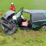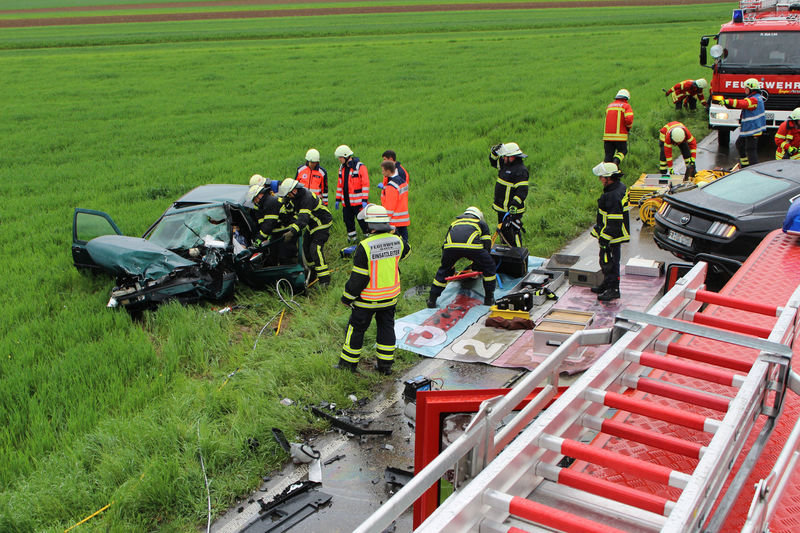 Nach Frontalzusammenstoß ein Fahrer eingeklemmt und schwer verletzt, ein weiterer Fahrer leicht verletzt