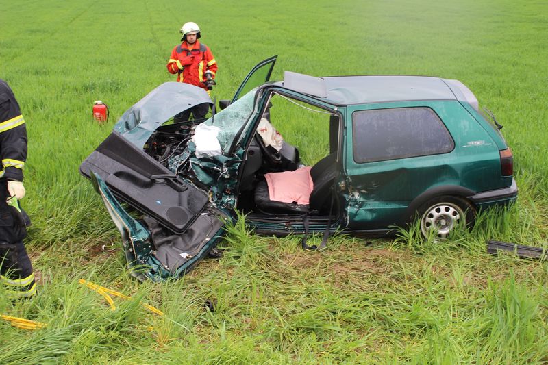Nach Abstimmung mit dem Notarzt wurde der eingeklemmte Fahrer über die Fahrertür befreit. Diese war jedoch völlig deformiert, weshalb die Tür komplett entfernt werden musste. Bereits 15 Minuten nach Eintreffen vor Ort konnte der ansprechbare Fahrer des Golfs aus dem Wrack gerettet werden und wurde unverzüglich vom Rettungsdienst übernommen. Beide Fahrer wurden mit den beiden Rettungswagen in verschiedene Kliniken transportiert.