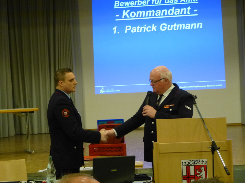 Auf Grundlage der neuen Feuerwehrsatzung der Feuerwehr March wurde dar Kommandant und seine Stellvertreter, der Schriftführer und Kassenverwalter sowie der Feuerwehrausschuss neu gewählt.