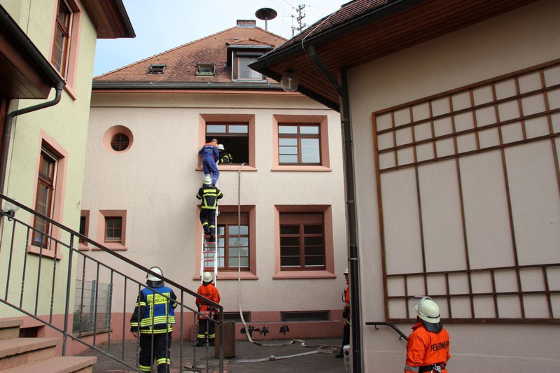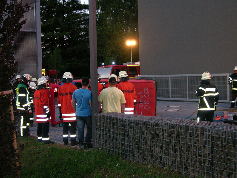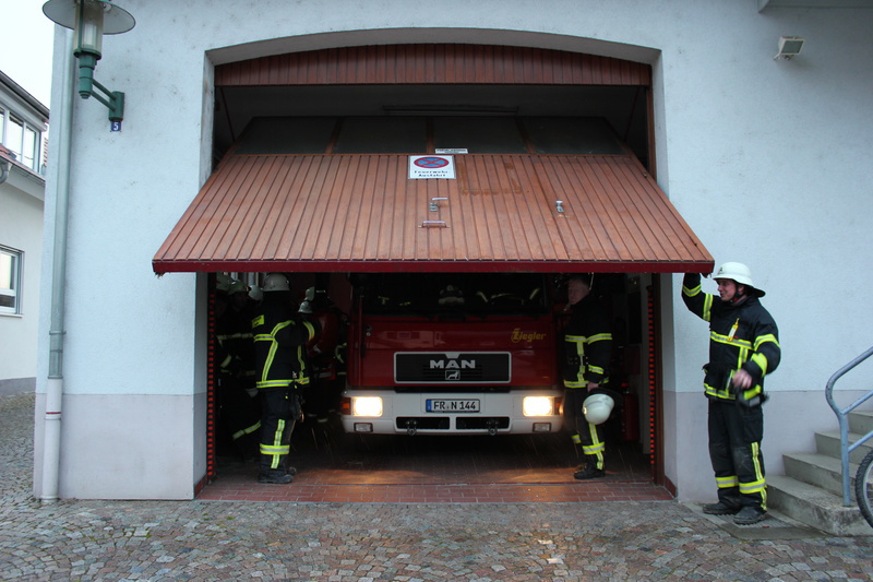 Neben einigen Kleinigkeiten, konnte die Übung als Erfolg verbucht werden. Ortsvorsteher Kikisch dankte der Feuerwehr, dass sie am Rathaus übte.