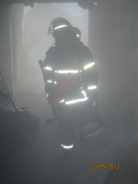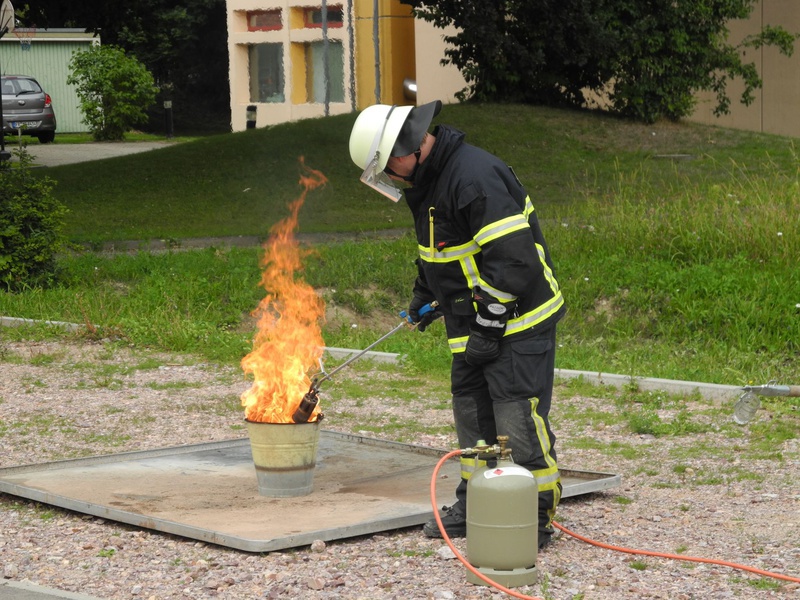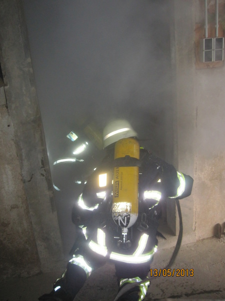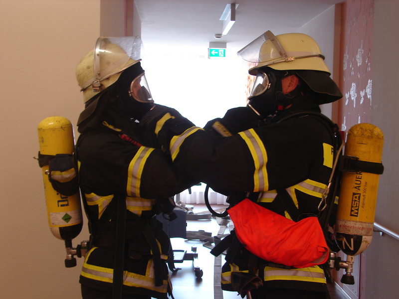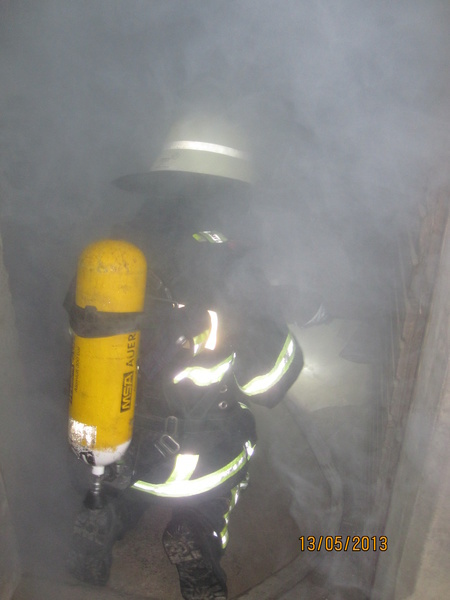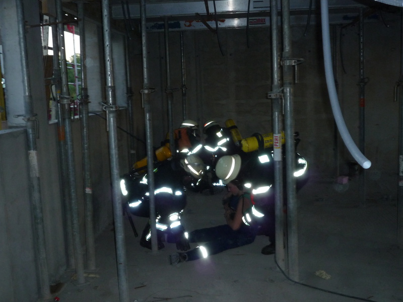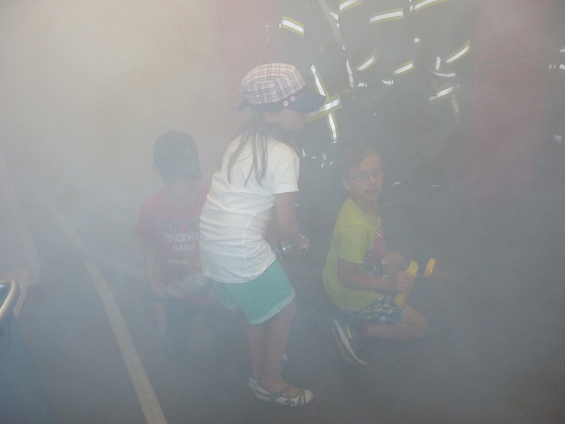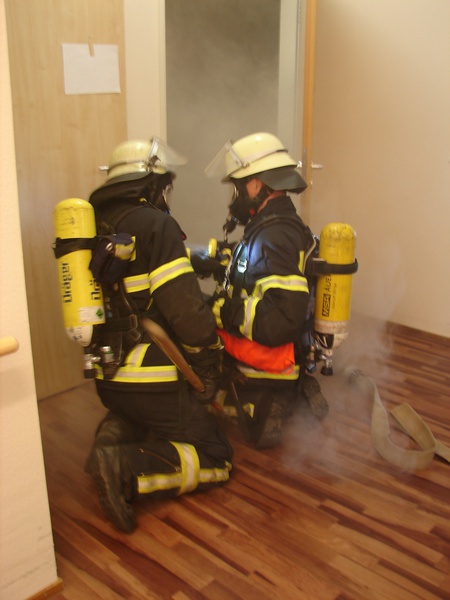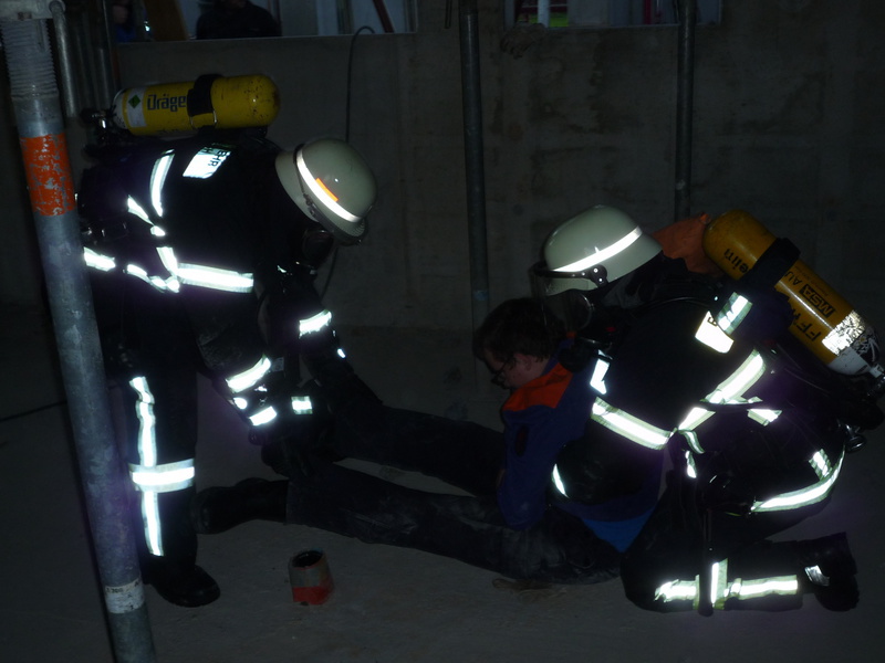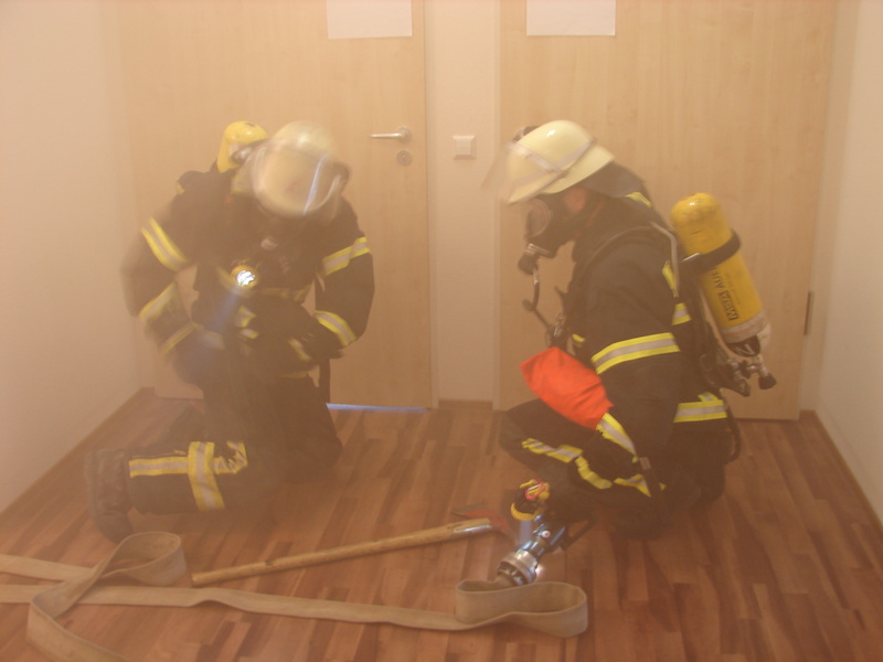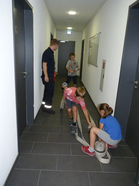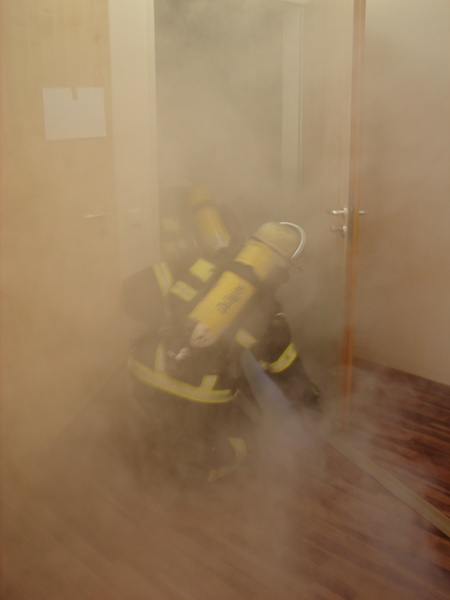 Zuvor haben die Jugendlichen in mit Übungsrauch verrauchten Räumen auf Zeit Gegenstände gesucht.
