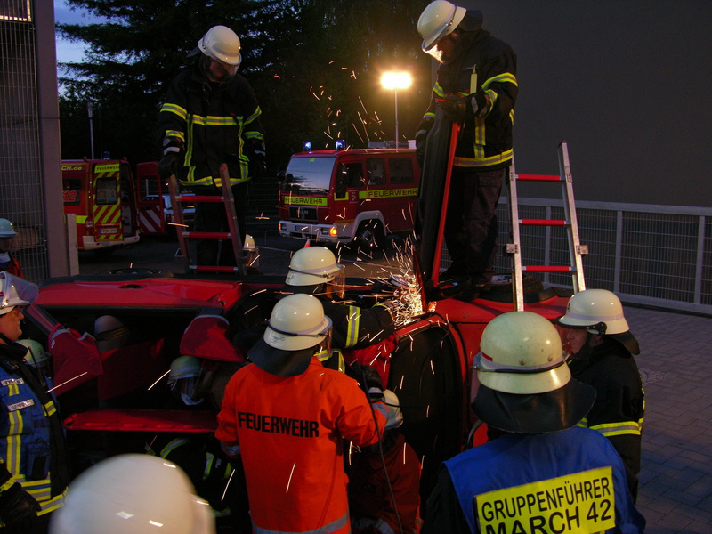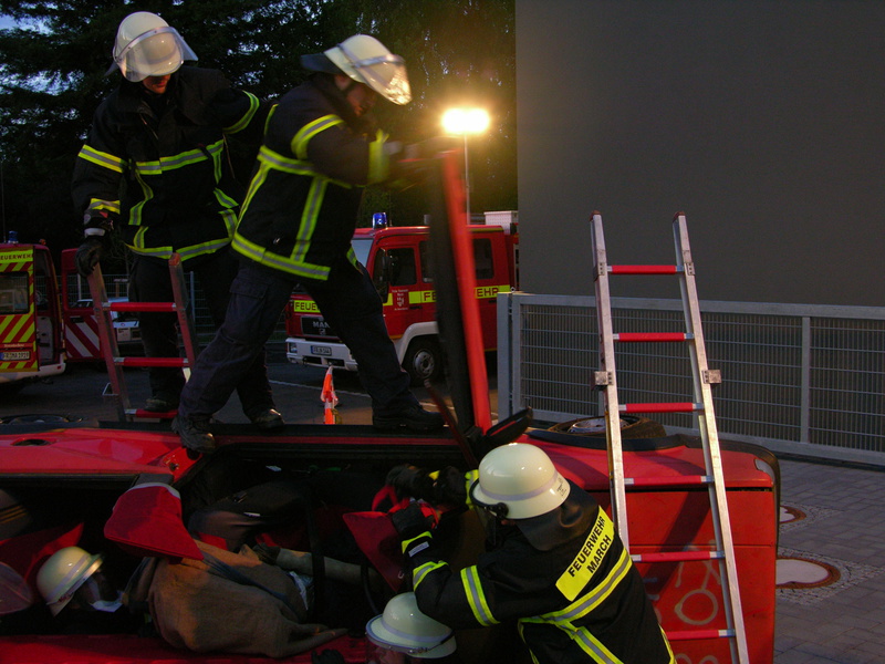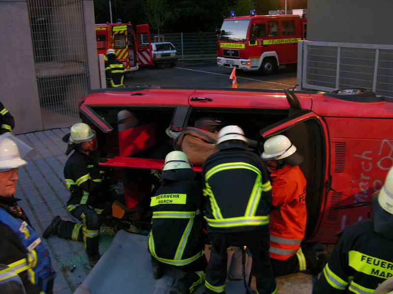 Die Feuerwehr March ist für über 6 km Uferlinie der Dreisam zuständig. Schon mehrmals wurden Personen in der Hochwasserführenden Dreisam vermisst. Da die Feuerwehr March auch für eine Personenrettung aus dem Fluss zuständig ist und dies nur mit besonderen Einsatzmitteln und -techniken machbar ist, muss eine solche Rettung mit den Fachleuten --dem DLRG-- geprobt werden. Bei diesem Unterricht ging es aber noch lediglich um Grundsätzliches.