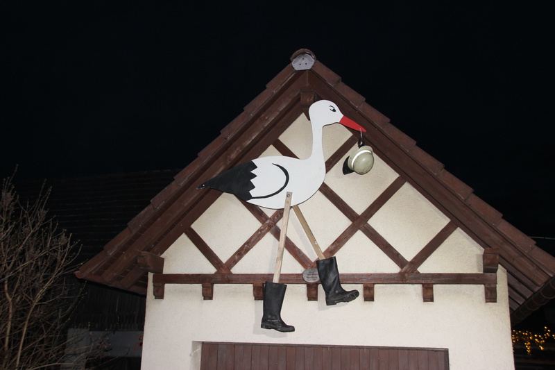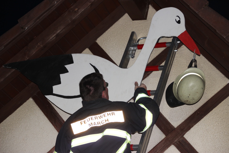 Anlässlich der Geburt von Paula stellten Kameraden der Einsatzabteilung bei Sabine und Michael Gehring den berühmten Storch auf.