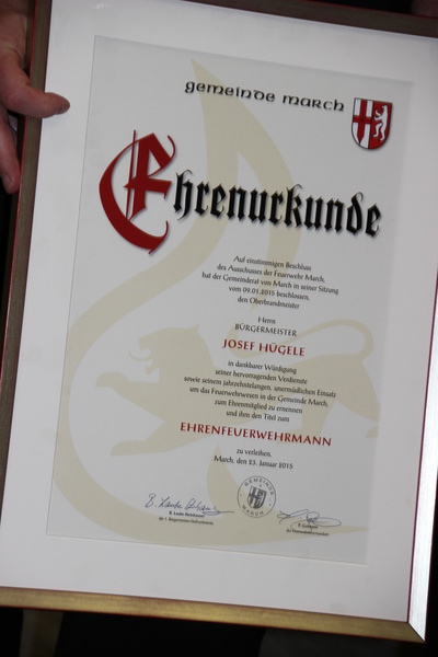 23.01.2015 Ernennung von BGM Josef Hügele zum Ehrenmitglied