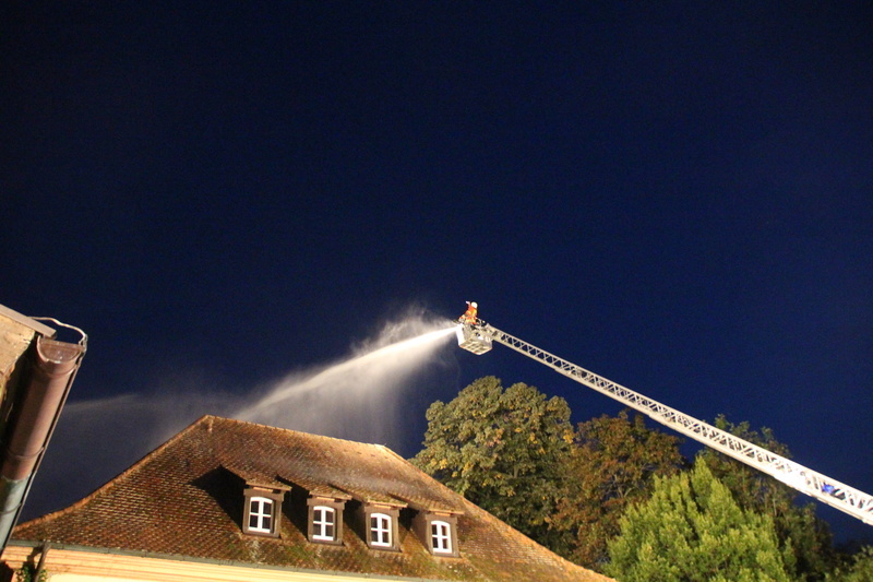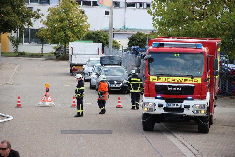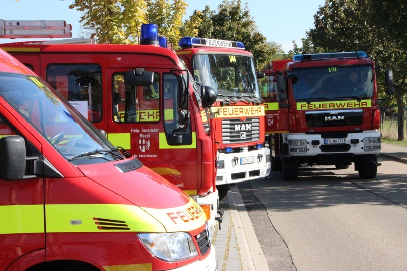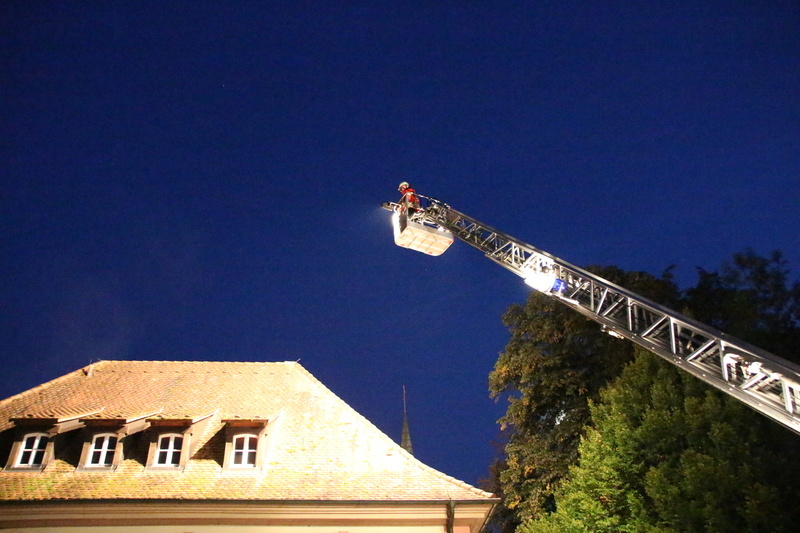 21.09.2015 Gesamtwehrübung mit DLK Ev Kirche Hugstetten