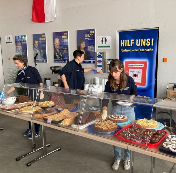 Beim Festwochenende der Feuerwehr March hat sich der Förderverein am Sonntag mit einem Kuchenverkauf an der Veranstaltung beteiligt. Sehr zur Freude der Gäste und auch unseres Teams konnten wir eine Vielzahl leckerer Torten und Kuchen anbieten, die freundliche Spenderinnen und Spender für uns gebacken hatten.