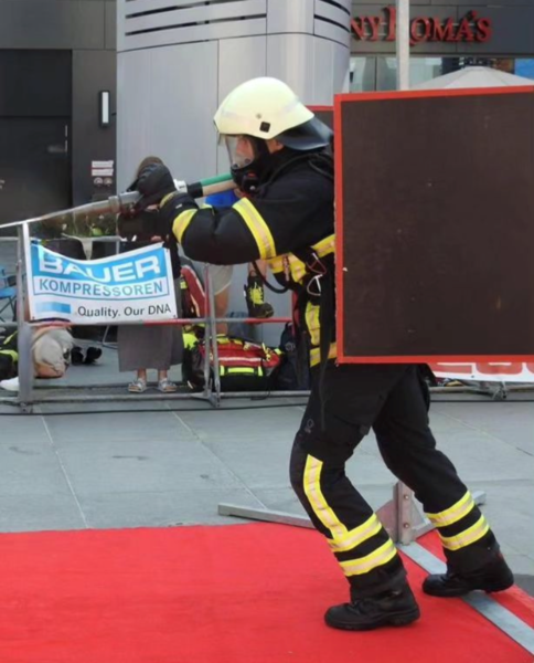 2 Kameraden der Feuerwehr March nehmen an der "Berlin Firefighter Challenge 2023" teil