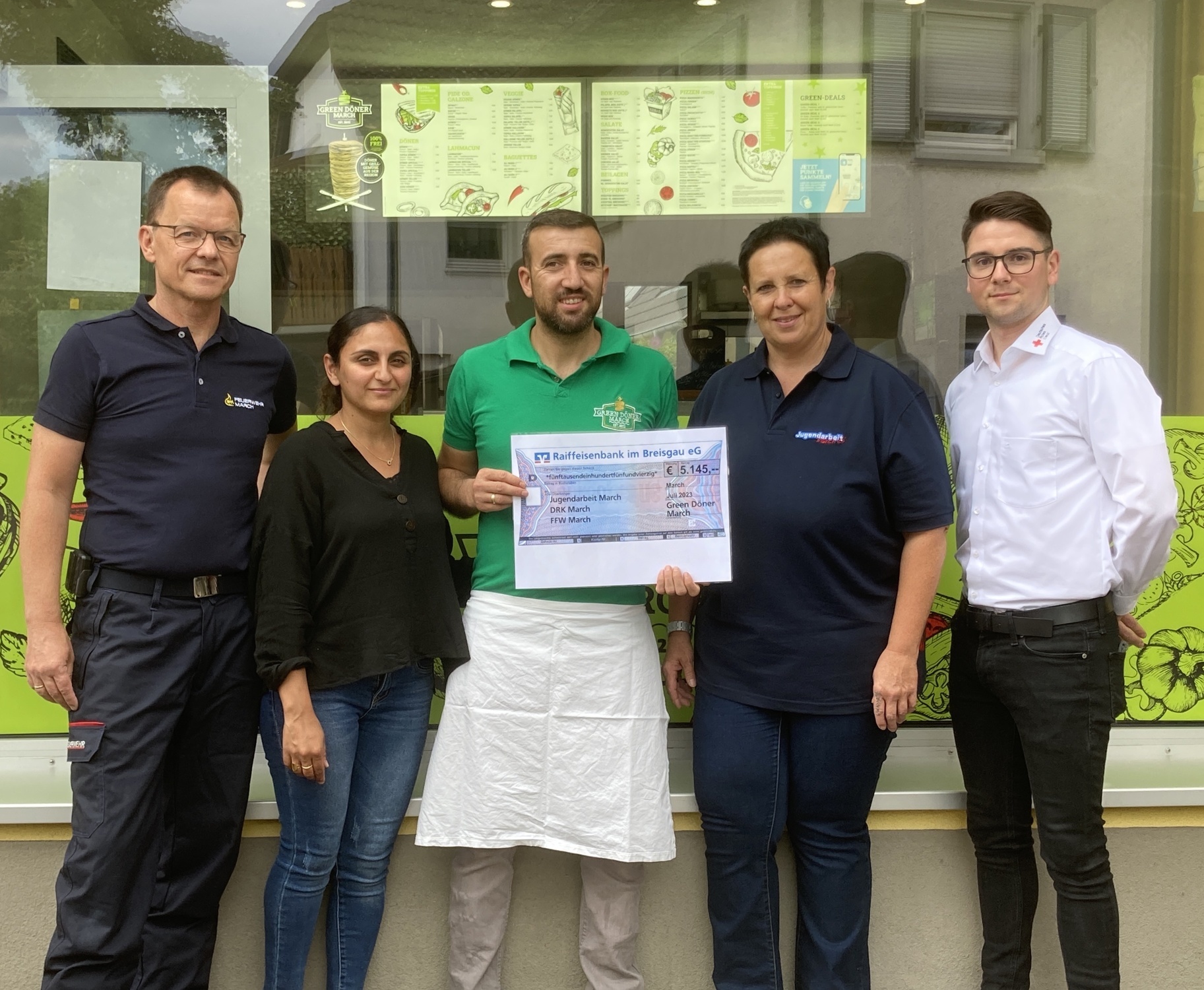 Anfang Juli wurde in Hugstetten der Gastronomiebetrieb „Green Döner March“ eröffnet. Inhaber Resul Sevgin hatte schon im Vorfeld angekündigt, dass er die Einnahmen der ersten beiden Tage gerne an Einrichtungen spenden möchte, welche sich für die Allgemeinheit engagieren.
